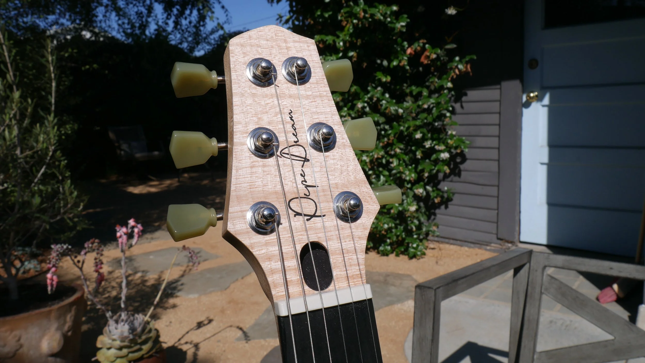 Fingerboard: Richlite Black Diamond, curley maple inlays -